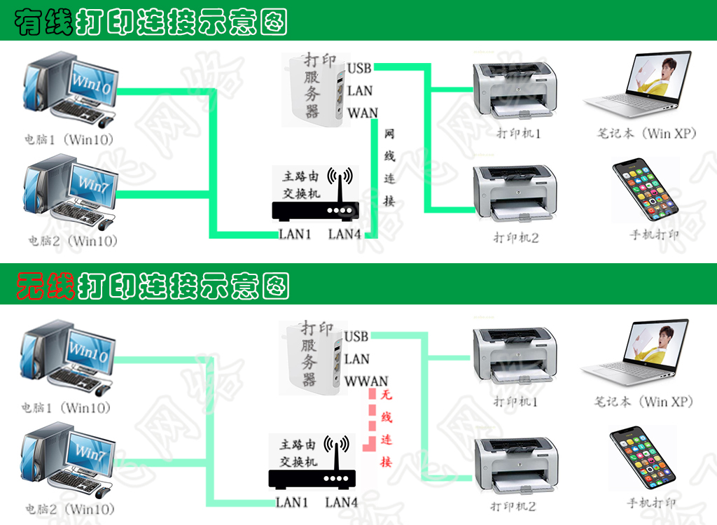 1.通电后等3分钟开机.将打印机USB线接入服务器USB口,将上网线接到服务器WAN口,如果购买的服务器没有WAN口则需无线接入,详细视频操作点我查看.